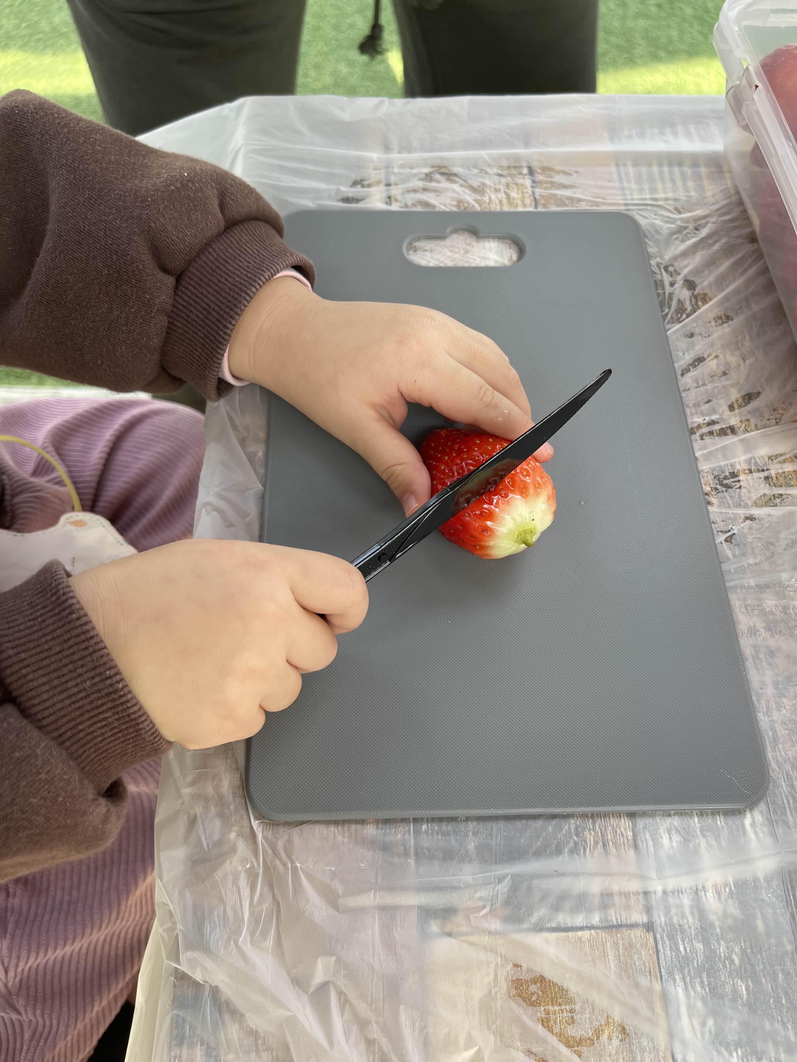 칼은 아이도 사용할수 있는 플라스틱 칼이라 오감놀이로 최고 였습니다.